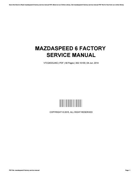 Read mazdaspeed 6 factory service manual Doc
